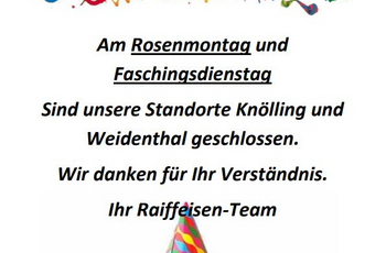 Öffnungszeiten Fasching Knölling/Weidenthal