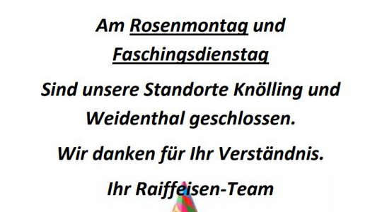 Öffnungszeiten Fasching Knölling/Weidenthal